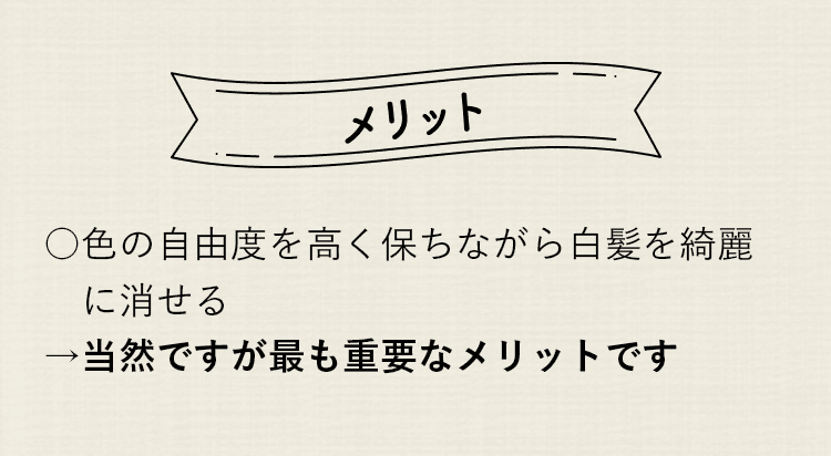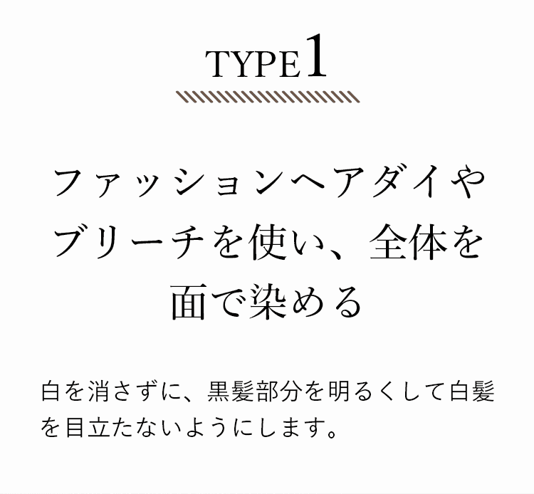 白髪を黒い部分に合わせて全体を一色に染めるスタンダードな白髪ケアです。