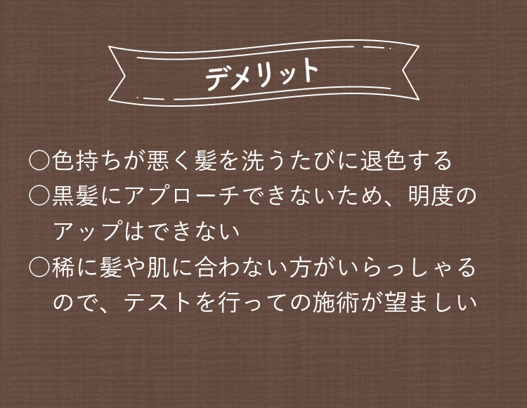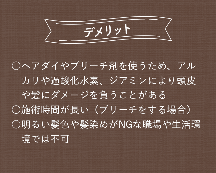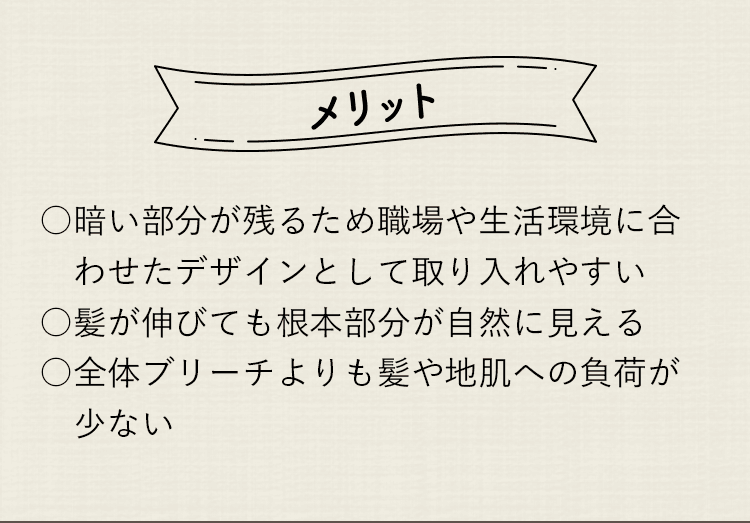 明るい髪色にできる生活環境の方にとっては、もっともおしゃれを楽しめる方法としてオススメです。