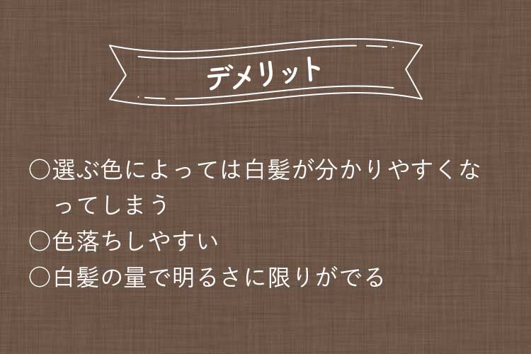 しかし白髪カバーには色々な方法があるにもかかわらず、それぞれのメリットやデメリットはあまり知られていません。